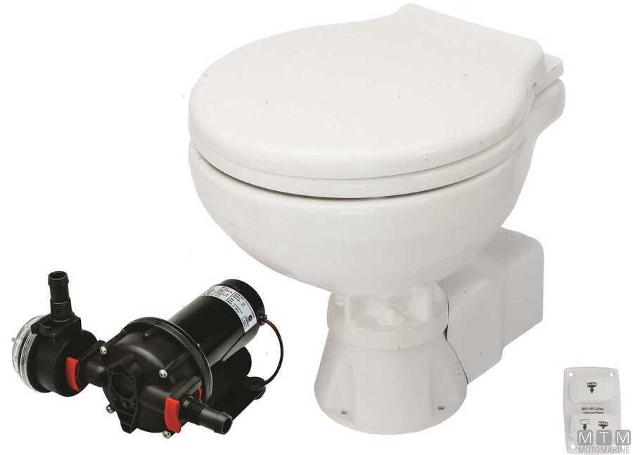 Elektronička kontrola ulaz/izlaz vode SPX Johnson AquaT Silent wc. Uključena ploča s dva gumba. Značajke: minimalna potrošnja vode, velika udobnost i izuzetno tiha. Punjenje se vrši vanjskom samousisnom pumpom, dok se pražnjenje vrši ugrađenom razbijajućom pumpom. Izvrsna kvaliteta bijele glazirane porculanske zdjele za savršenu higijenu. Radi s slatkom i slanom vodom te se može montirati iznad ili ispod razine vode. WC dolazi s pumpom za punjenje vode Johnson kod 10-13399-05 (12V) ili 10-13399-06 (24V). Ulaz Ø 19 mm (3/4″), izlaz Ø 38 mm (1″1/2), prilagodljiv na 25 mm (1″). 3 godine garancije.