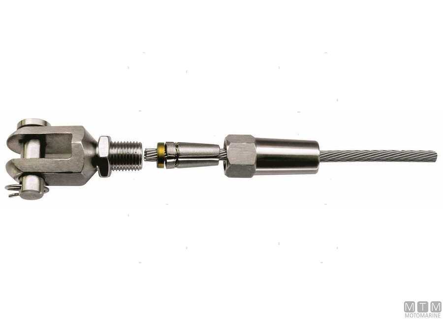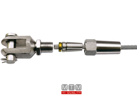 Swageless krajnici od nehrđajućeg čelika 316. Izvrsna snaga držanja koja odgovara sili lomljenja žice. Lako se montira, jednostavno umetnite čeličnu žicu u terminal, a osovina je automatski hvata. Pogodno za sve vrste čeličnih žica (19/49/133 žica).