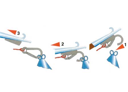 Karabiner od nehrđajućeg čelika za vezivanje opremljen je bajonetnim priključkom za čamac. Priključuje se na rupu plutajuće boje, a kada se čamac povuče, karabiner ostaje pričvršćen na boju.