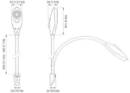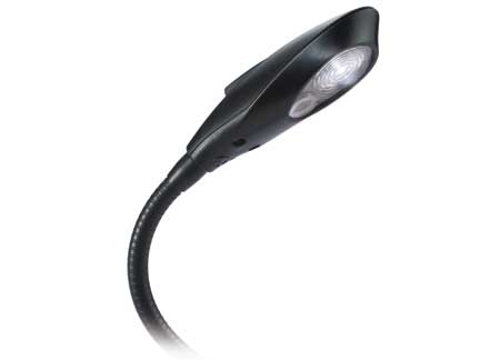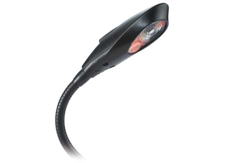 Satinirano crno aluminijsko tijelo i fleksibilna vrat s izmjenjivom crvenom/bijelom LED svjetlom. Minimalna potrošnja 1,5 W.