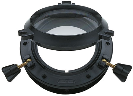 Nylon okvir i akrilno staklo okrugli portl. Uključuje završni prsten. Vijke nije uključeno. Veličina spojnice 30 mm. CE EN ISO12216 sertificirano.
