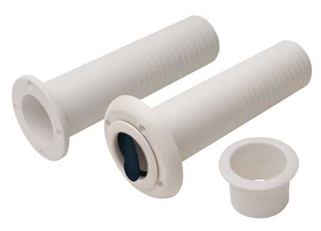 Teleskopski navojni ispust od iznimno Ävrstog Bijelog Polipropilena. Opremljen nepovratnim ventilom-poklopac N/V (po izboru) jednostavne ugradnje.