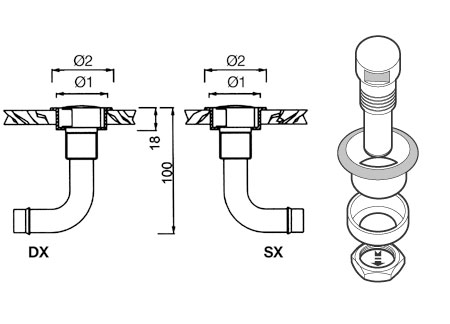 Ugradbeni odušnik savijen na 90° od Kromiranog Mesinga za spremnike.U skladu s R.I.Na. propisima.