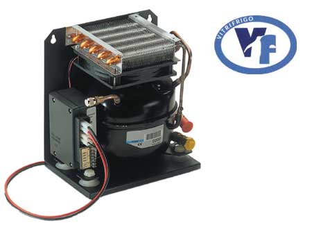 Okomita rashladna jedinica Danfoss 12/24V s ventilatorom za hlaÄenje i brzim spojnicama tipa Vitrifrigo. Potrebno nadopuniti isparivaÄem po izboru sa spojevima tipa Vitri.